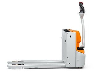 Fits in even the smallest of spaces. Or inside a lorry. The EXH 14 pedestrian low lift pallet truck is so compact and agile that you can manoeuvre it effortlessly around the loading area of a lorry. If necessary, even with the tiller raised – thanks to the intelligently positioned controls. The ergonomics really come into their own when the tiller is in the horizontal position: the extra-long tiller protects your feet while enabling you to maintain a back-friendly posture, and the LED display in the tiller head provides you with all relevant vehicle information at a glance. In particular, the low Ast makes the EXH 14 a manoeuvring marvel in the tightest of spaces. It is robust, powerful on the ramp, boasts excellent lateral stability and performs admirably even in industrial environments. This is also true when used away from home. With a chassis height of just 740 mm, the EXH 14 can be easily transported in a lorry. Its standard 15 A on-board charger and optional lithium-ion technology ensure it is always ready to go.